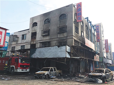 事发当晚现场市民拍摄的视频显示,久盛烟花店在夜空中燃起熊熊烈火,1楼至4楼的窗户有火舌喷出,上方浓烟滚滚,店铺前大片区域都变成了“火海”。在噼里啪啦的爆竹声中,不时有烟花从火中蹿向四周,市民远远围观。