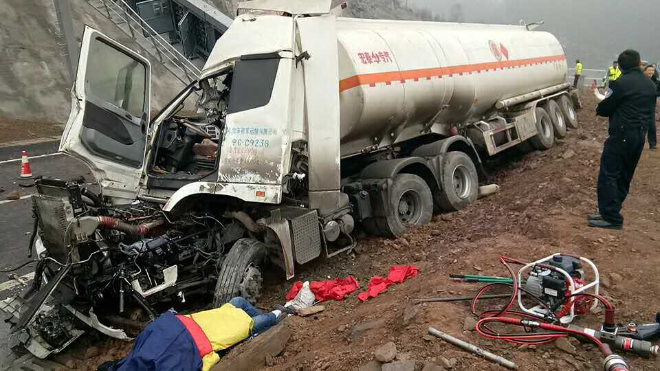 上午8时33分,四川巴中消防接到报警称:银昆高速巴广渝段(巴中至广安方向)0公里+900米处(枣林隧道隧道附近)一辆危化品车发生严重交通事故,致两人被困,亟需救援。巴中消防立即出动了2辆水罐消防车、1辆抢险救援车,共15名消防官兵赶赴现场处置。