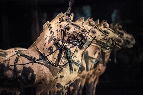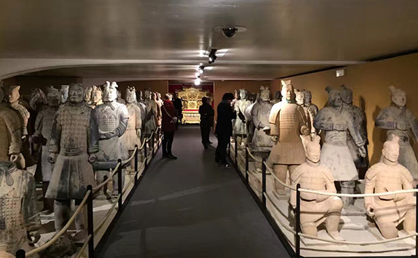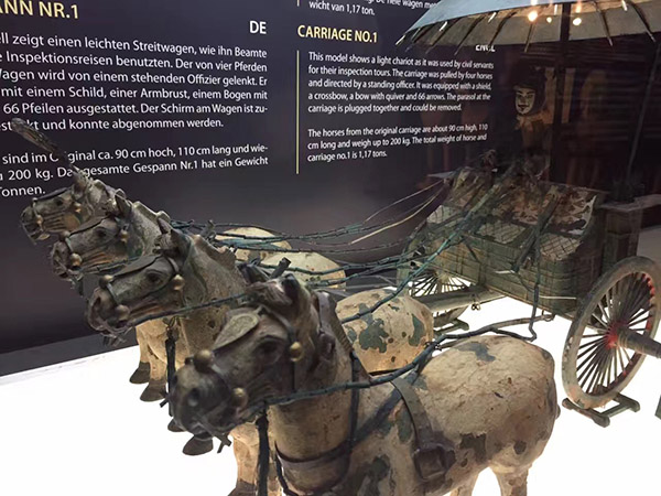 欧洲比利时列日火车站展览中陈列的兵马俑展览现场
