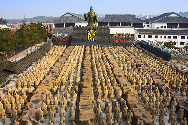 2月8日,一组被网友称为史上最大山寨“兵马俑群”的图片在网络上疯传。图片中有上千个兵马俑,整齐排列,场面震撼。该“兵马佣群”位于安徽省安庆市太湖县境内的4A级旅游景区———“五千年文博园”内,据该园导游介绍,为了让游人感受秦朝的文化风情,这个“兵马俑群”完全按照西安临潼兵马俑一号坑1比1复制而成。