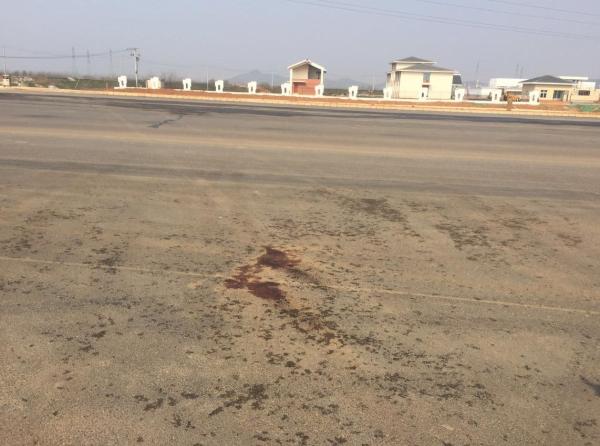 事发现场地上还残留着血迹。