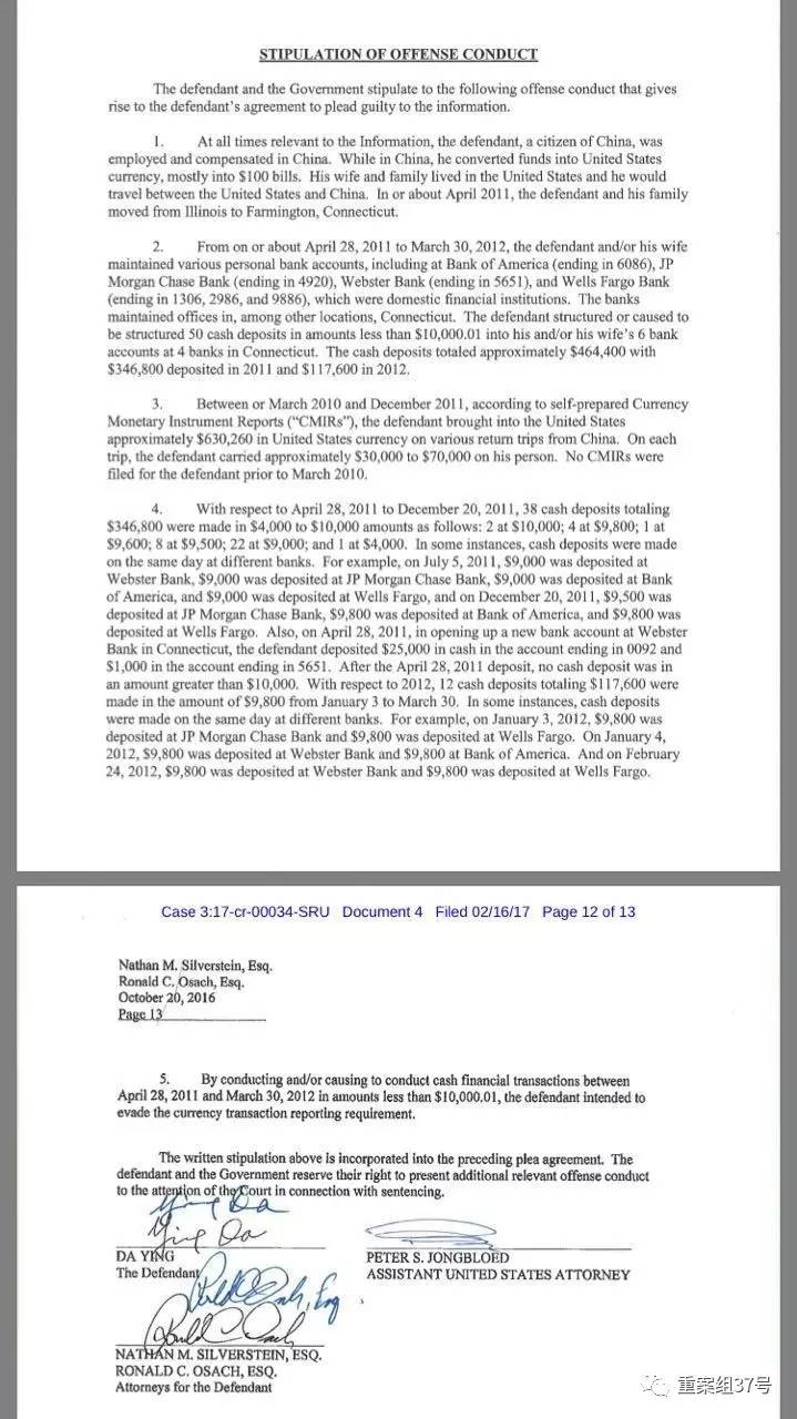 根据美国联邦法律,所有金融机构需为超过一万美元的现金交易提交报告。而为了避免提高税率,常有人通过重复存入或提取低于一万美元现金,或将超过一万美元的现金进行拆分交易。检方的指控书中称,即便存入的资金来源于合法手段,以这种方式进行的金融交易,仍然违反联邦刑法。