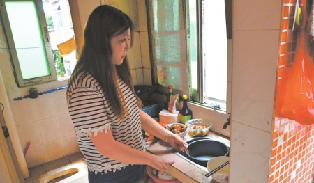 2016年5月19日,广东,马泮艳在出租屋内做饭。