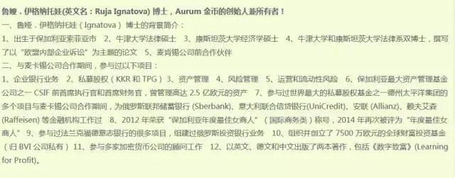 在其“股东介绍”里,鲁娅·伊格纳托娃被称为牛津大学法律硕士、康斯坦茨大学经济学硕士、牛津大学和康斯坦茨大学法律系双博士、麦肯锡公司前合作伙伴。