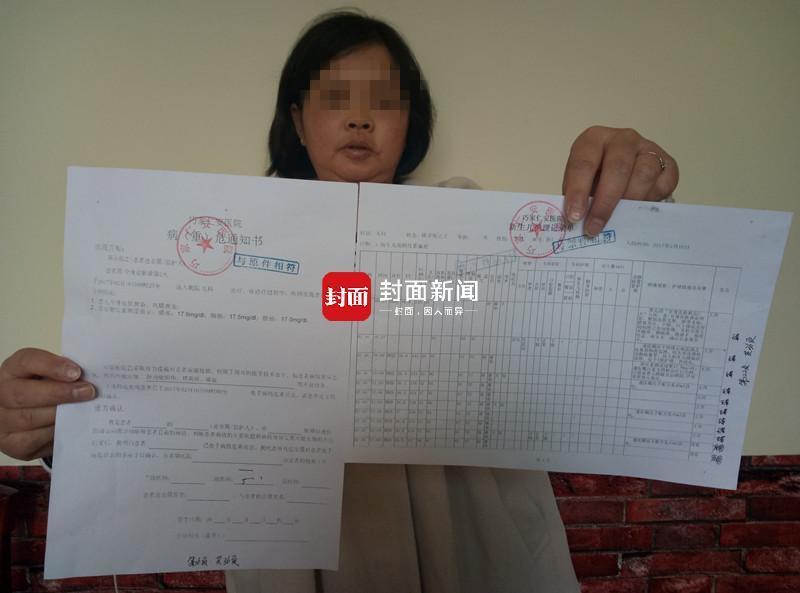 陈妻展示,2月16日上午9点,医院的新生儿护理记录单上显示正常,病历中却出现了一张家属没有签字的病危通知单。