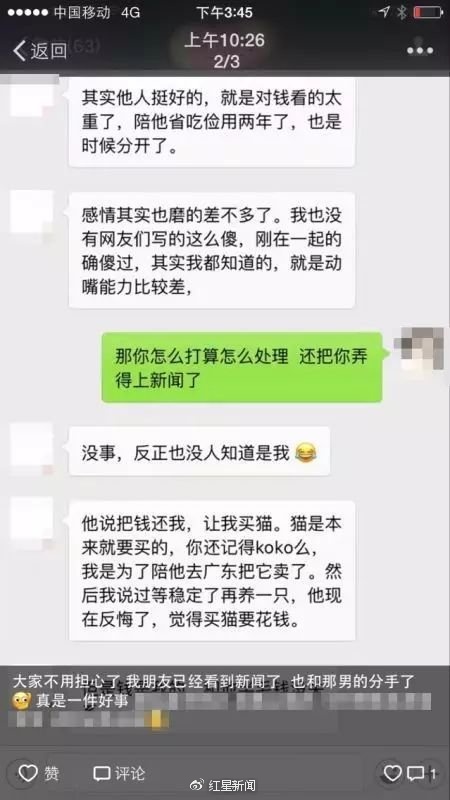 3月8日,网曝一女子月收入8000元每月只有600元的生活费,想购买一只2500元宠物猫还得男朋友批准,其原因是每个月工资都上交给男朋友,男友说存钱买房,每月只给她600元生活费,目前女生有18万存款都在男友那里,也不敢提分手,一方面两人还有感情,一方面担心,一旦分手,钱还要得回来么?