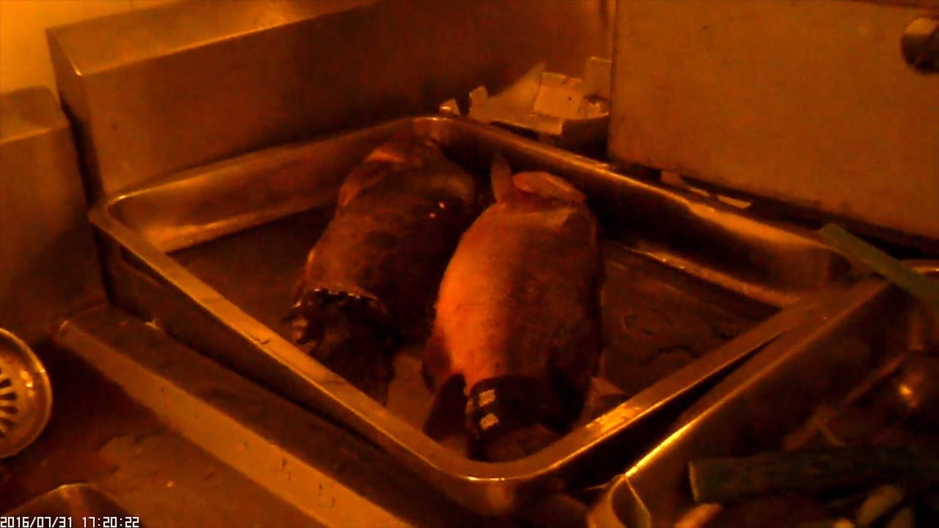 而蹲守在厨房的记者发现,配菜员接到点菜信息后从冰柜里取出一条死亡已久的鲈鱼送到厨房并进行烹饪。不多久,这条死鲈鱼便成了一道绚丽夺目的“松鼠桂鱼”菜肴。