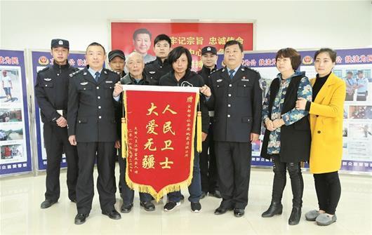 “非常感谢宜都的民警,是你们的热心和敬业帮助我们一家团聚了。”临别之际,妹妹汪学菊含泪送上一面“人民卫士大爱无疆”的锦旗,全家人与派出所的民警一起合影留念。