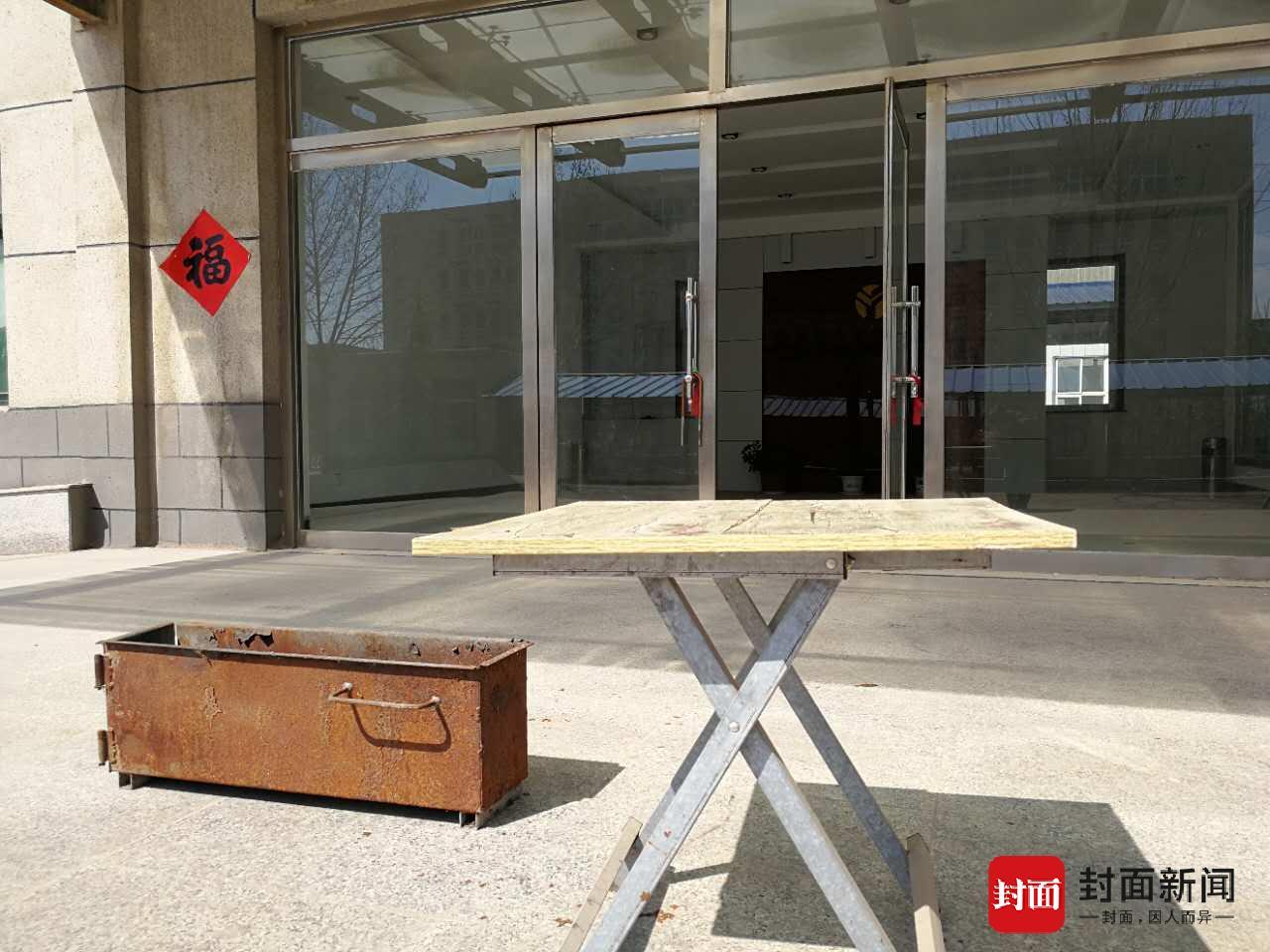 讨债者当时在这张桌子上吃烧烤,一旁是当时用的炉子。