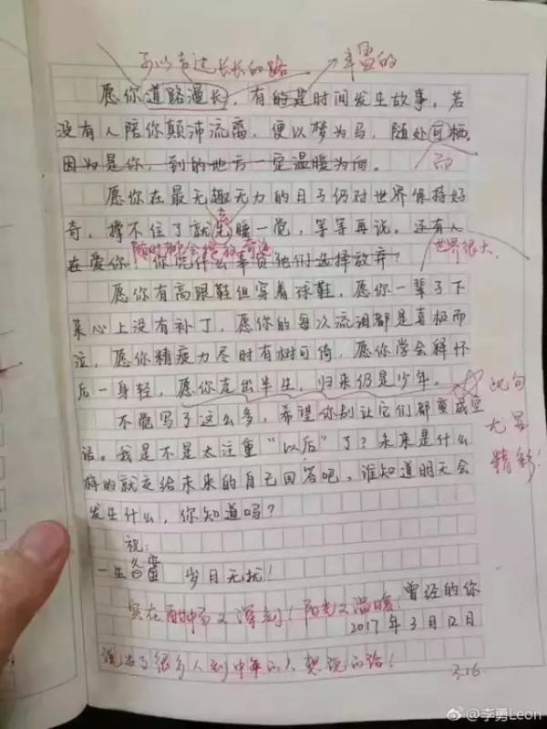 (原题为:《“愿你走出半生,归来仍是少年”初二学生作文走红!》)