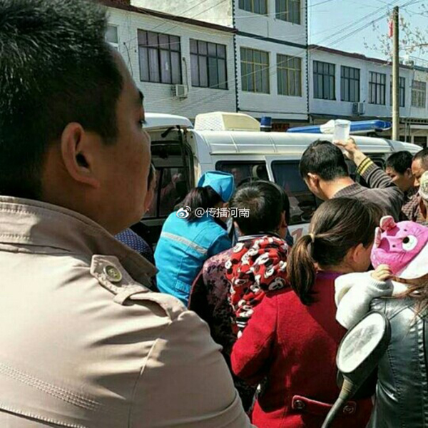 正阳县120急救指挥中心工作人员告诉澎湃新闻,第一个报警电话是10时41分打来的,后来陆续有多人报警;现场有两名死者,正阳县人民医院拉回来3人,其中2人死亡,1人被转到驻马店的医院。