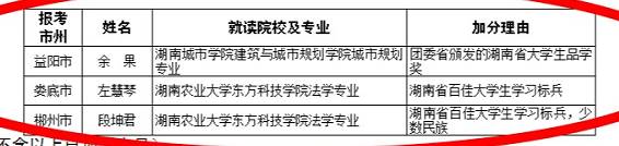 值得一提的是,《2007年湖南省选调生加分情况公示》显示,因荣誉加分的考生共35人,32人的加分理由,无论加分项还是分值,都可在公告中找到对应规定。但段坤君、左慧琴、余果3人,借以加分的荣誉不在公告列举范围内,分别获得的3分加分也没有说明原因。