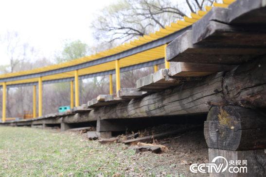 现象:一个半圆形长廊下,木栈道上的木板多处松动,高低不平,踩上去吱吱作响,而之前换掉的木板被直接扔到了栈道下。