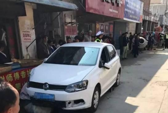 一辆白色轿车失控连撞7人