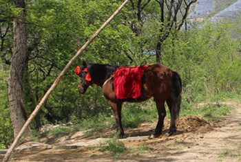 邯郸娲皇宫景区内,通往山顶的主路旁大树上拴着四匹马,马粪堆积,散发臭味。本文图片均为央视网 图
