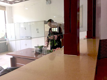 26日11时30分许,邯郸娲皇宫景区诺大的售票中心只有一个窗口办理售票业务,有一人在售票窗口内择菜。