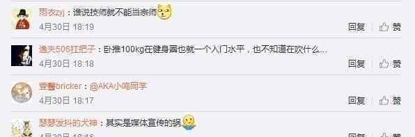 有网友认为,谁说技师就不能当宗师,有网友认为:卧推100KG,在健身界只是个入门水平,也不知道在吹什么,具体功力如何,有待网友自行理解。