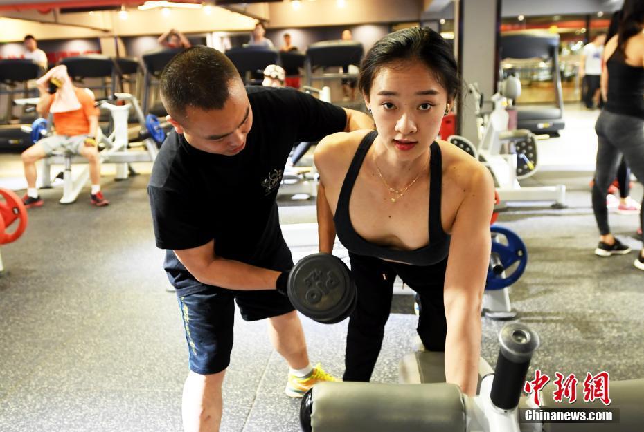 5月5日,记者走进位于成都大学的国家健美健身队训练基地,探访在该基地训练的国家健美健身队,该队即将出征参加在蒙古国乌兰巴托举行的2017年亚洲健美健身锦标赛。图为队员在进行单臂哑铃俯身划船训练。安源 摄