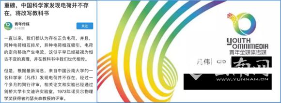 云南网讯(记者 邓建华 熊强)“这意味着我国的科学家即将改写全球的教科书,这是我国科学家的胜利,也是基础物理学的胜利。”近日,一篇名为《中国云南大学的一名科学家发现电荷并不存在,将改写教科书》的帖文流传于网络。该文经过自媒体热传后,引发网友的热议和关注。更引发了包括云南大学在内的师生的强烈质疑。5月7日,云南大学发出声明称:经查证,报道中提到的凡伟不是云南大学的师生。随后,记者也联系到了凡伟本人,他也承认自己并非云南大学的学生或老师。