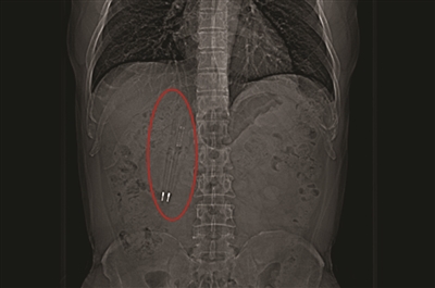 要不要把笔拿出来呢?王先生犹豫了很久,一方面,36年来从未有不适的感觉,甚至,王先生都忘记它的存在了;另一方面,身体里有一个不属于自己的东西,总归有点危险。犹豫了两三个月,王先生终于鼓起勇气,来到医院,准备将体内的两支笔取出来。