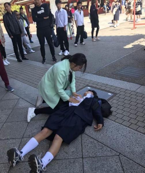 据澎湃新闻网,2017年5月9日报道,4月20日上午,在日本东京著名景点浅草寺,一名日本中学生癫痫发作,口吐白沫倒在路上。这一幕正好被在日本度假的郑州护士任双双看到,她毫不犹豫,第一个跑过去进行施救。