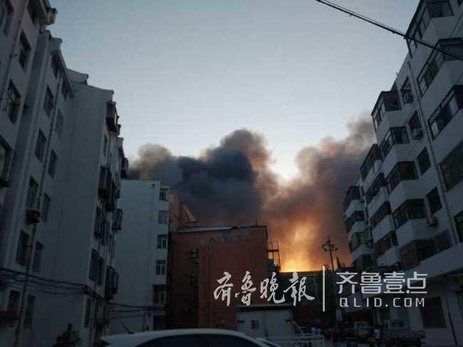 记者现场在现场看到,6点半左右,警方的封锁警戒线又从灯具城附近,向外延伸了一段距离,接近胜利西街。7点40分左右,仍能看到滚滚黑烟。