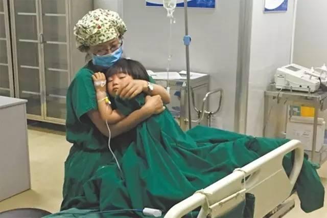 由于家属不能进手术室,看到这种情况,孟宗霞便将患儿轻轻抱在怀中。