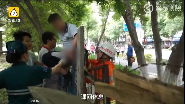 5月17日,新疆石河子市一学校下课时间,一高中男生抄近道买饮料,在翻越围栏时,大腿根部被栏杆上的倒尖刺刺穿,“特殊部位”也被扎到,卡在栏杆上。后经消防与医护人员努力,男孩被救下送医治疗。