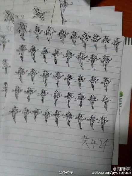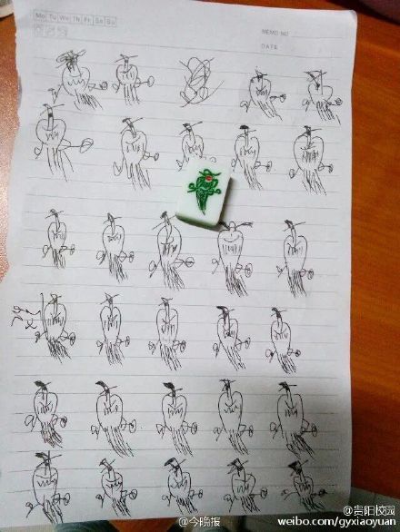 贵州工商职业学校护理学院的4名女生在宿舍打麻将时被"抓",随后被辅导员罚每人画一百只"幺鸡"。