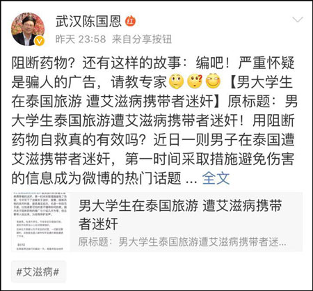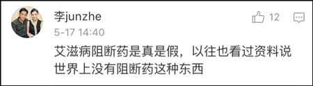不过世界上是否真的有艾滋病阻断药?对此,联合国艾滋病规划署驻华办事处相关负责人周凯表示,文中所谓的类似 " 紧急避孕药 " 的阻断药物(Post Exposure Prophylaxis,简称 PEP)"代表的意思是‘暴露后预防’,而非‘阻断’。该词并不能直接翻译成艾滋病阻断药。"
