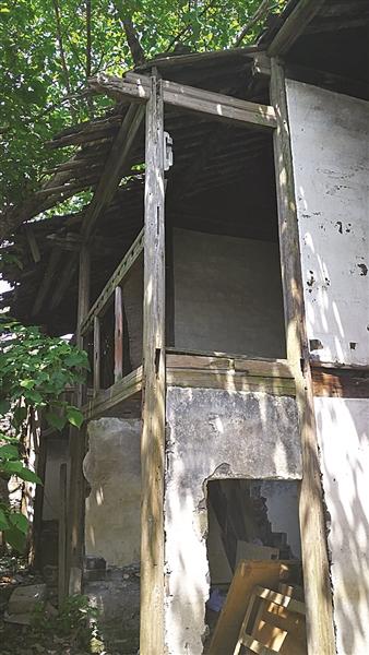 走进该处建筑,内部是杂草丛生,三间砖木混合结构的屋子墙体已经倒塌殆尽。院子里堆放着旧沙发、枯树枝等各种垃圾。眼前的这些景象很难让人把这里和一个文物保护单位联系起来。