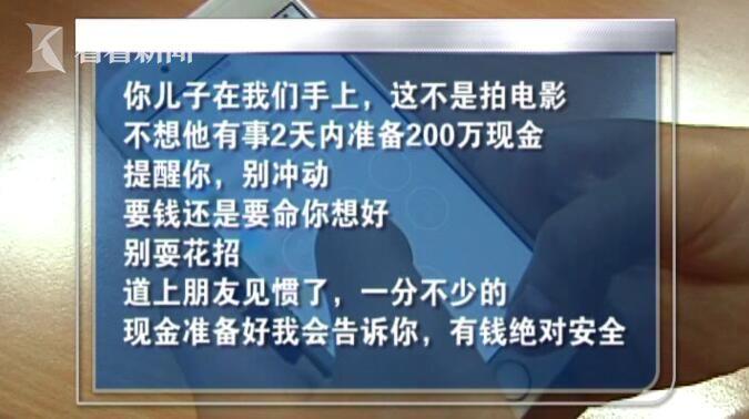 受害人无缘无故突然消失,其中必有蹊跷!考虑到王宏家境殷实,警方由此初步判断,这应该是一起绑架案。果然,就在25号下午2点左右,正在派出所内报案的王宏父亲收到了从儿子手机发来的一条短信:你儿子在我们手上,这不是拍电影。不想他有事2天内准备200万现金,提醒你,别冲动,要钱还是要命你想好,别耍花招。道上朋友见惯了,一分不少的,现金准备好我会告诉你,有钱绝对安全。