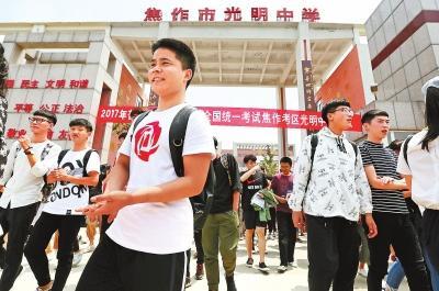 6月7日,焦作市光明中学考点,2017年高考第一场考试结束后考生走出考点。赵林峰摄