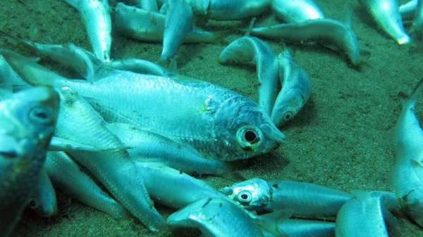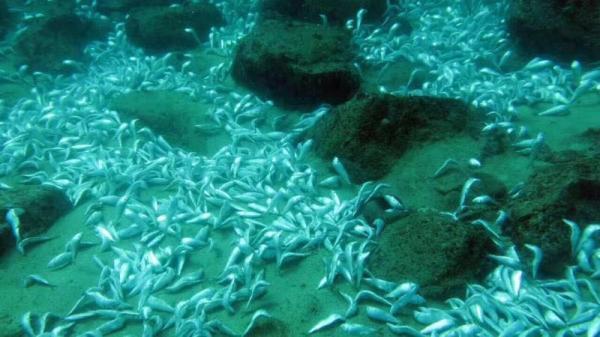 目击者:海底沙地上有密密麻麻成片的死鱼