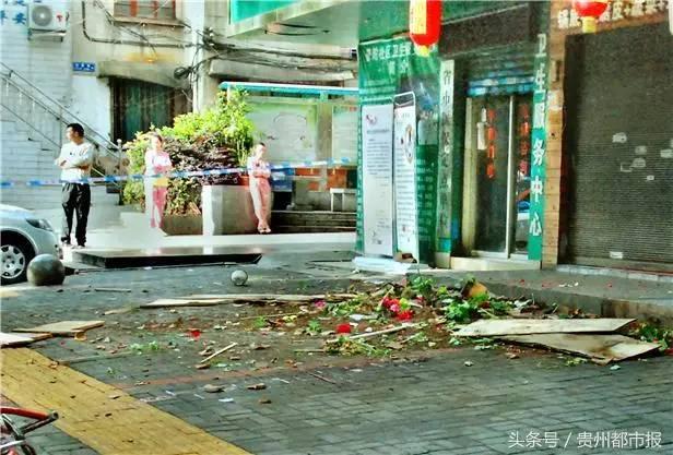 当天上午约8点,《贵州都市报》记者抵达事发现场时,死者遗体刚被送走。现场还拉着警戒线,仍有多位民警在现场维护秩序。记者看到,人行道上、地面上还留有很大一滩血迹,旁边有摔碎的花盆、泥土和花,还有掉下来的不锈钢窗条。民警不允许有人走到事发现场的楼下,因为5楼的窗户下悬吊着不锈钢窗台护栏,随时有可能掉下来。