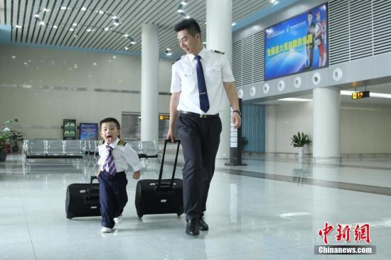 资料图为空少爸爸带孩子体验空乘工作。毛成山 摄