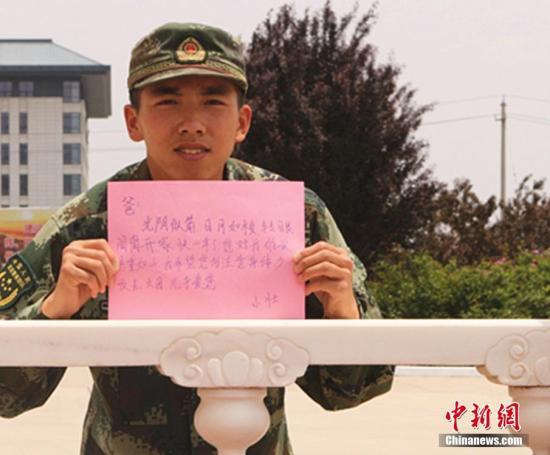 资料图为官兵手写一句句质朴的语言,向远方的父亲送去深情祝福。成伟 摄