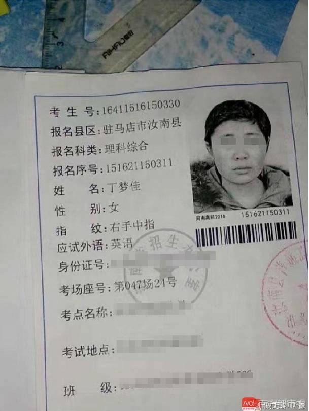19日下午,自称为死者舅舅的聂五岳在电话中对记者称,溺水者名叫丁梦佳,是中国药科大学中医药学院2016级学生。身份信息后被学院提供的“2016年高考准考证”证实:丁梦佳毕业于河南驻马店汝南县某中学,报考科类为理科综合。