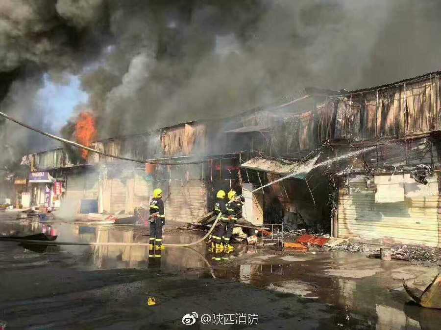 大明宫凤城八路建材市场发生火灾。图片来源@陕西消防
