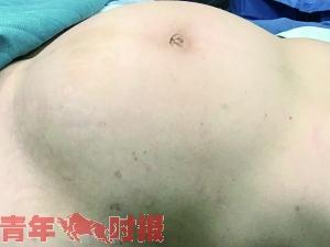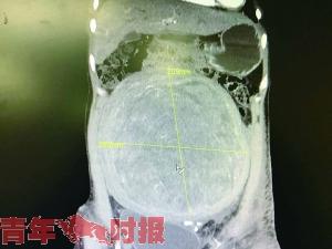 接诊的妇科陈学军主任医师发现,胡女士四肢纤细,肚子却奇大,像八个月大的孕妇。