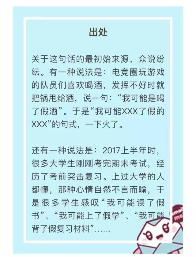 “我可能上了个假班”、“我可能读了个假大学”、“我可能吃的是假饭”……2017上半年,当你苦于被人生各种“套路”时,这句流行语应该能稍稍缓解一下无奈。