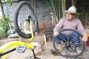 “受伤”共享单车屡现街头,昆明87岁的王秉炎老人看不下去了,退休后摆了个义务修车摊的他,开始也修起了共享单车,甚至还主动去搜集被破坏的单车,修好再放回路边,半个多月来修了70余辆。老人说:“以前什么苦日子都过来了,现在政策这么好,怎么却有那么多人不爱惜公共财物呢。”