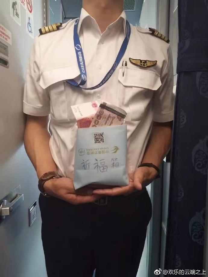 昨天下午,微博用户@欢乐的云端之上发布内容称“为了主动防范撒币旅客,各航都推出了各种应对措施,封闭式客梯车……机务专人守发动机……机上增设祈福箱…… ”,并配发照片。从其发布的照片上可以看到,机务人员手捧一个写着“祈福箱”的东航纸袋,其中还有不少现金。