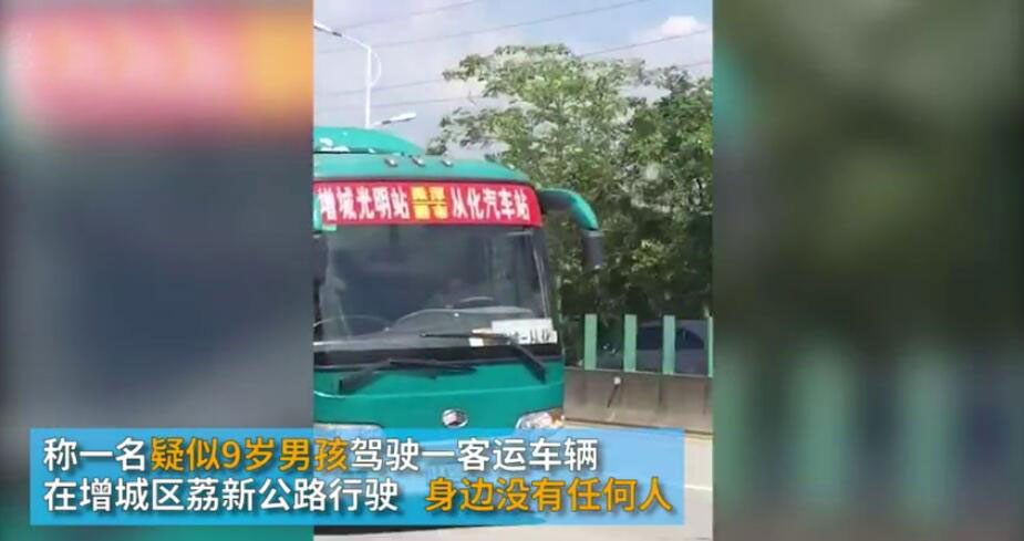 6月30日,广东广州一名疑似9岁男孩驾驶一客运车辆在增城区荔新公路行驶,身边没有任何人。警方接到报警后将该车辆拦停并将车上男孩控制,所幸未引发交通事故和拥堵。