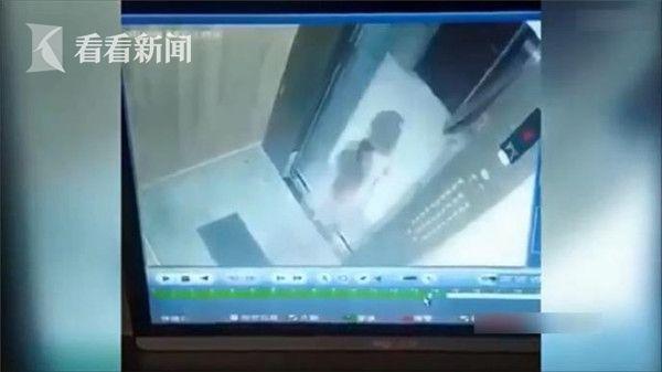 这段电梯内部监视器录下的视频显示,女童所乘坐的电梯卡在两层楼之间,她用双手强行拉开电梯门,还用四肢撑住门,导致电梯门长时间无法关闭。
