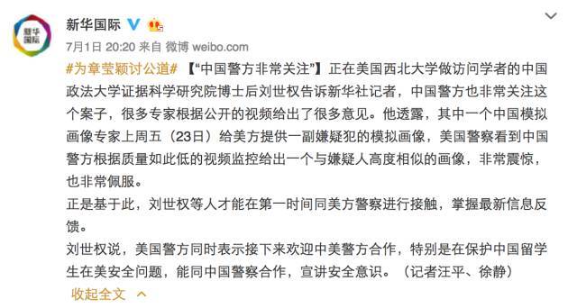 最初提到林警官向美国警方提供画像的,是新华社下属官微之一的“新华国际”。
