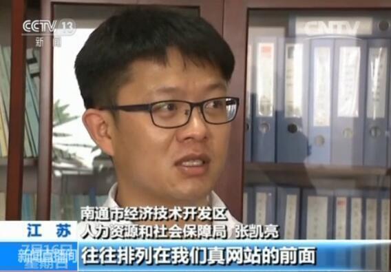 张凯亮是南通经济技术开发区人社局的一名工作人员。一次在搜索本单位的官网时,他发现竟有另一个网站与官网同名,真假难辨,而假冒网站甚至会排在真正官网的前面。而在仿冒网站会有仿冒的查询窗口,查询职称认定信息,而原有的官方网站则并没有这样的功能。