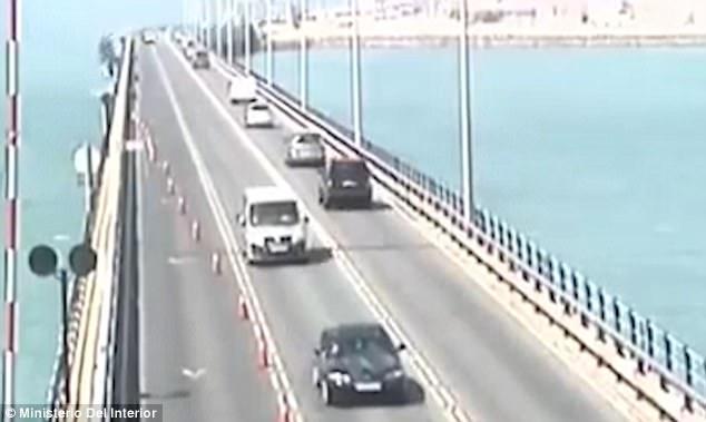 据英国《每日邮报》15日报道,事故发生在14日上午,当时一位司机开着装有一辆轿车的拖车行驶在卡兰萨大桥上。突然,他注意到前方桥面有两辆轿车相撞,损毁非常严重。