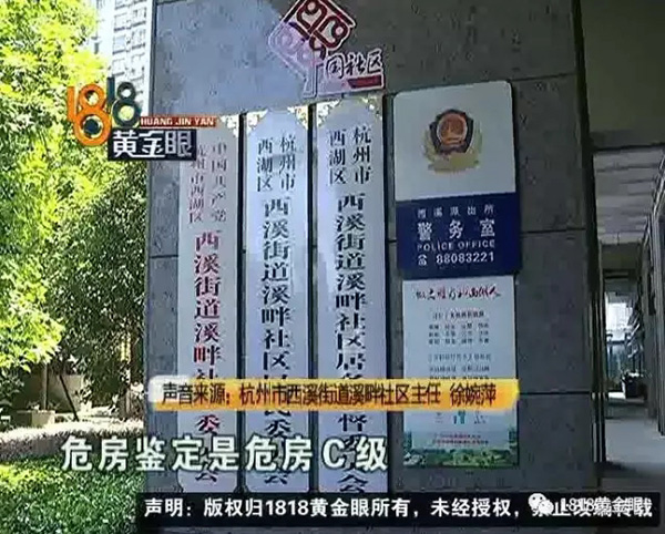 杭州市西溪街道溪畔社区主任徐婉萍说:“危房鉴定是危房C级,居民反映78号有下沉,楼道里也有开裂,C级危房可以继续住,就是部分存在不安全因素,已经通过加固这种方法,已经把它加固了,6月26号才刚刚竣工验收,有没有验收通过,我们还没接到通知。”