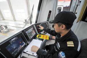 吴枫林登上车头的驾驶室,对车上仪表盘、空调、雨刷、开关门、广播、制动等装置一一进行检查,他的同事则对车厢内的设备进行仔细的检查,消防器、空调、线路显示牌、应急对话器……每一个设备都要保证运行正常。
